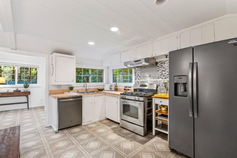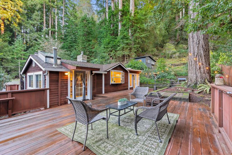 Arrive at your peaceful redwood retreat, a cozy cottage nestled among towering trees just minutes from Downtown Scotts Valley. Step onto the generous wraparound deck built from local redwood and feel life slow down as you sip morning coffee or unwind while the forest glows around you. The large driveway offers plenty of room for oversized vehicles, and the one car garage with workshop space gives you a place to tinker, create, or store gear. An attached studio adds an ideal spot for guests or a quiet workspace. Behind the home sits a charming garden cabin with a loft and electrical hookups, perfect for an artist studio or second workspace tucked away from the main cottage. The landscaping adds extra magic with mature maples, camellias, dogwood, and lush seasonal blooms that color the property year round. Inside, the home welcomes you with fresh paint, new counter tops, and thoughtful updates that keep its warm vintage charm. The spacious bedroom looks out onto a private patio surrounded by ferns and redwoods, creating a peaceful start or end to your day. With Highway 9 and 17 nearby, commuting is easy while the property still feels like a quiet forest escape. Only 15 minutes to Santa Cruz and 30 to Los Gatos. This is a place to slow down and feel at home.