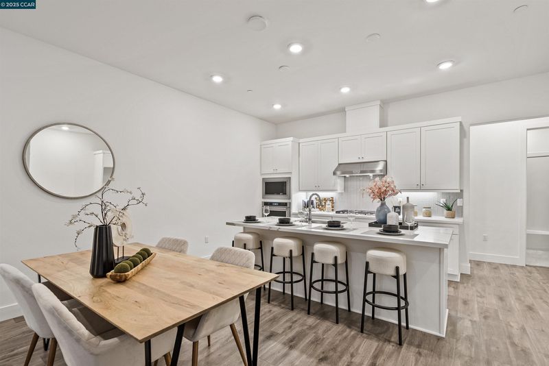 Connect with what matters most at Terraces at The Station, a new townhome community in Sunnyvale, the heart of Silicon Valley. A truly accessible home with a room on every level. Craftsman style stairs flow up to the bright living level on the second floor, revealing the spacious great room, covered balcony, and casual dining area. The designed kitchen is highlighted by a large center island with breakfast bar, Energy Star KitcheAid stainless steel appliances, modern cabinets, quartz countertops with designer tile backsplash. The third floor, the gracious primary bedroom suite is enhanced by an ample walk-in closet and a gorgeous primary bath with a dual-sink vanity, a large luxe shower with seat enhanced by clear-glass enclosure. Thoughtfully designed interiors with 8-foot doors, 5-1/2" baseboards, and modern energy-saving LED integrated recess lights throughout. Finished 2-car garage includes pre-wired plug with 50 amps for electric car charging. Enjoy the community clubhouse, indoor/outdoor lounge area, fireplace, bocce ball court, dog park, walking paths and expansive lawns. Terrace at the Station is located near Santana Row, Valley Fair Mall, Shopping Centers. Close to VTA Light Rail, Lawrence Caltrain and Bart. (photos not of actual home, for marketing only)