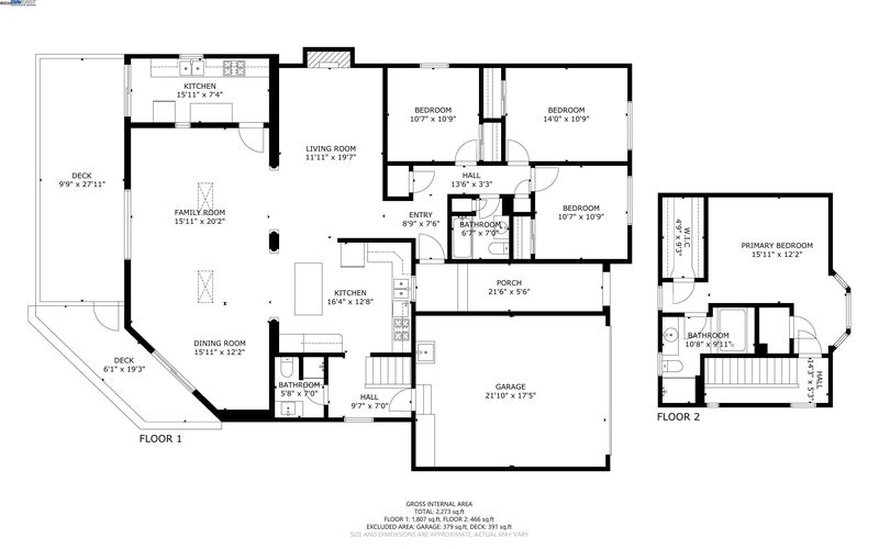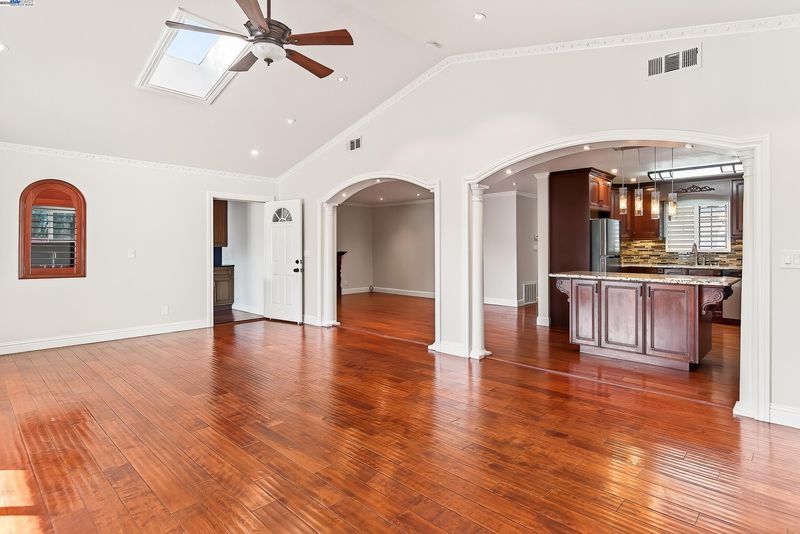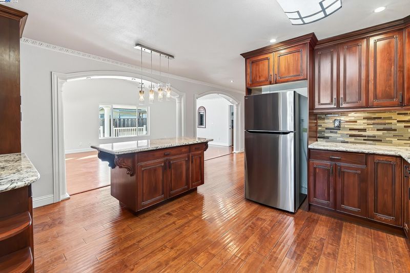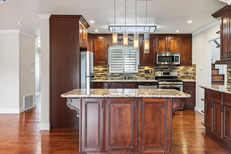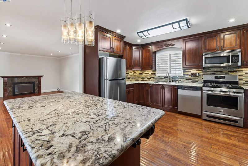 Beautifully Expanded And Upgraded Hayward Home Offering 2,359 Sq. Ft. Of Living Space With A Flexible Layout Ideal For Multi-Generational Living. Featuring A Freshly Painted Stucco Exterior And A Stamped Concrete Driveway That Adds Great Curb Appeal. The Main Level Includes Separate Living, Dining, And Family Rooms, Providing Exceptional Space For Large Gatherings. Enjoy Vaulted Ceilings, Skylights, Recessed Lighting, And Rich Hardwood Floors Throughout. The Main Kitchen Impresses With Custom Cherry Cabinetry, Granite Counters, A Large Island, Stainless Appliances, And Designer Lighting. A Second Kitchen Offers Incredible Flexibility For Multi-Gen Living, Extended Family, Or Additional Cooking Needs. The Main Level Also Features Two Full Bathrooms And Three Comfortable Bedrooms With Hardwood Flooring And Plantation Shutters. Upstairs, A Private Primary Suite Includes A Walk-In Closet And Remodeled Bath With A Jetted Tub, Granite Counters, And Walk-In Shower. Outdoor Highlights Include Composite Decking, A Covered Patio With Decorative Columns, And Two Storage Sheds. Additional Features: Finished Garage With Cabinets And Sink, Fresh Paint, And Updated Lighting. Prime Location Near 84 & 92 Bridges, 880 & 580 Freeways, BART, And Major Bay Area Tech Employers.