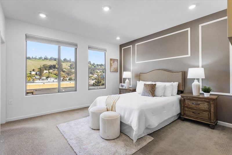 ** MODERN MARVEL with VIEWS ** Built in 2019, this stylish townhome is move-in ready * Abundant bright & airy living space w/soaring ceilings & gorgeous views of the foothills from the primary suite * 2nd En-Suite conveniently positioned on the ground level for multi generational living, guests, or a private office * 2 kW Solar system (owned) w/ EV outlet in garage * Expansive kitchen w/massive island, custom hood over range, granite countertops, S/S appliances & engineered tile flooring seamlessly flows into the dining & living areas for an open concept lifestyle * Relaxing primary suite w/ walk-in closet & luxurious, spacious bath featuring both tub & shower stall, dual sinks * Upstairs laundry where clothes live * Tankless water heater, dual pane windows, recessed lights * Multi-Zone central AC & heat * Rare side by side attached 2 car garage * Spacious balcony * Enjoy everything California weather has to offer in the communitys BBQ area & playground, great for entertaining * Show off your green thumb in the shared garden * Convenient location in dynamic, robust community, close to restaurants / shopping / Garin Regional Park / BART / San Mateo bridge / hwys 580 & 880 **WELCOME HOME**