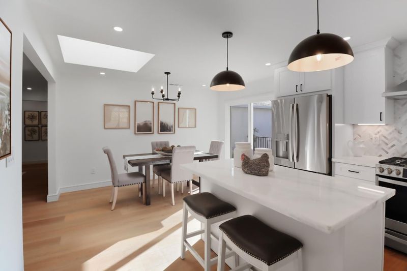 This rare single-story retreat offers two fully independent luxury residences across nearly 2,000 sq ft, each with its own address, meters, new 200-amp panels, water heaters, Google-zoned heating, and private entrancesideal for multigenerational living or strong rental income. The main home includes 3 beds and 2 updated baths, featuring wide-plank floors, modern lighting, and a floor-to-ceiling stone electric fireplace. The chefs kitchen showcases a white marble island, stone backsplash, under-cabinet lighting, GE Profile appliances, Pacific high-suction hood, and a Smeg microwave, with a skylight brightening the dining area. The front bath includes a premium bidet toilet and designer finishes. The newly built ADU offers 2 beds and 1 bath, high ceilings, an open layout, abundant natural light, and peaceful Broadmoor Valley views. It includes its own kitchen, laundry, entrance, water heater, and water submeter for full independence. Outdoor living features a stylish courtyard patio and a generous lot with multiple usable spaces. Parking accommodates four cars plus one in the finished garage, which includes a Tesla charger. With 5 beds, 3 baths, two complete residences, and refined modern finishes, this turnkey property offers exceptional flexibility and elevated living.