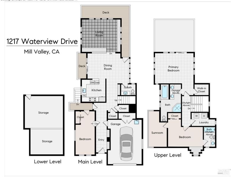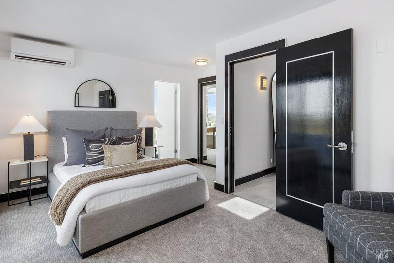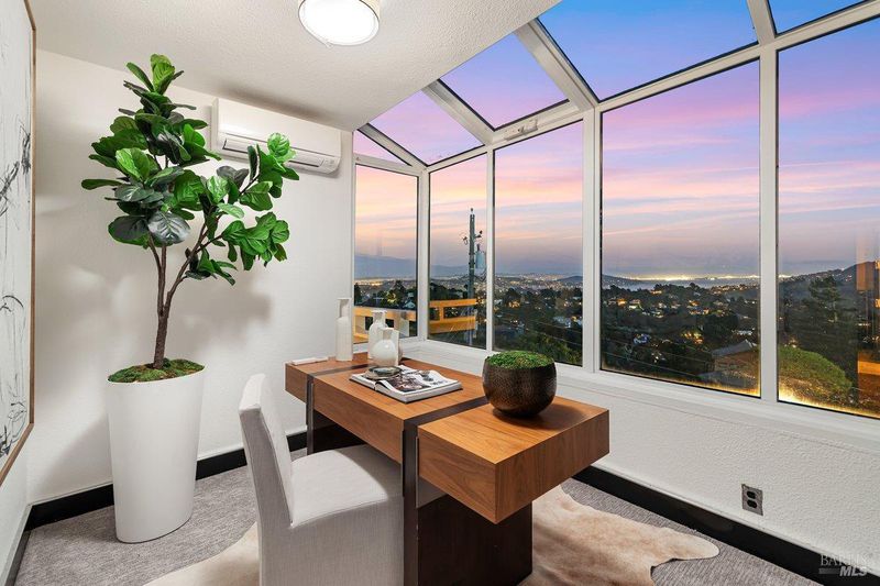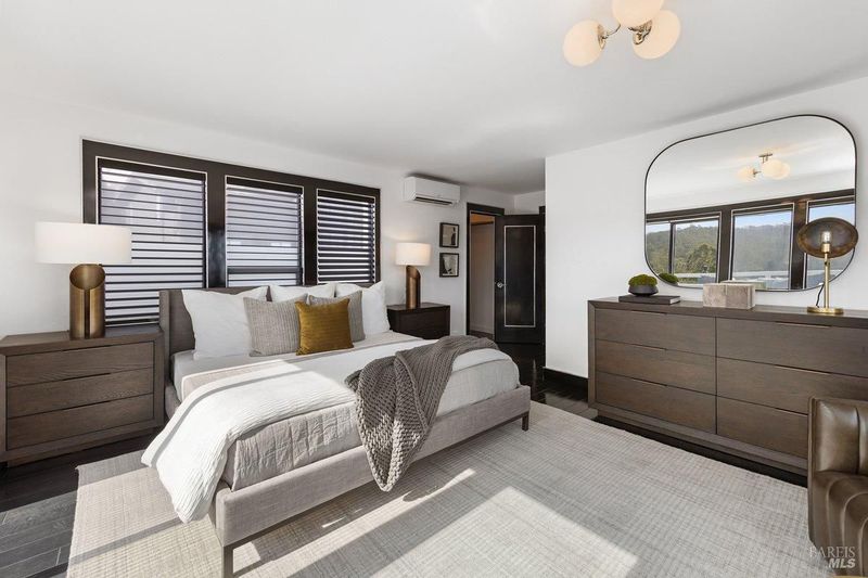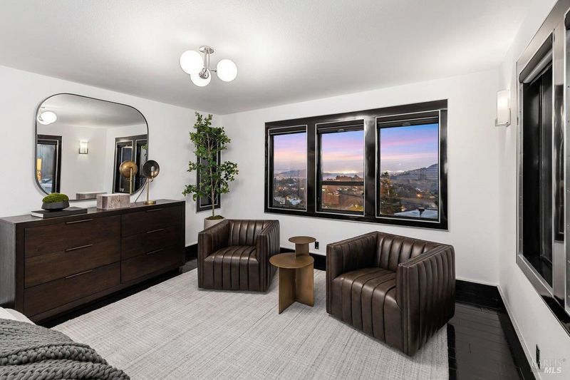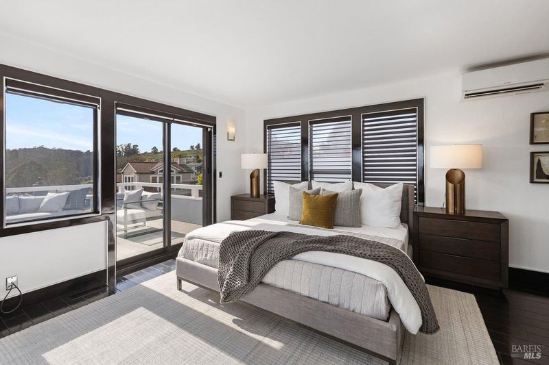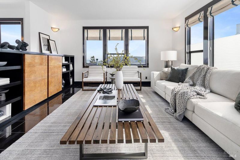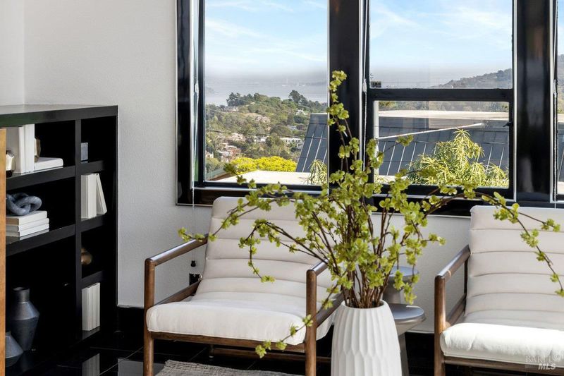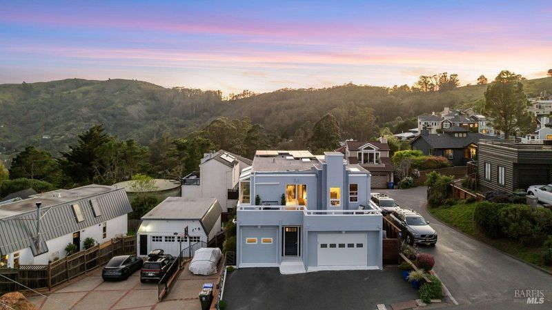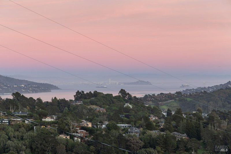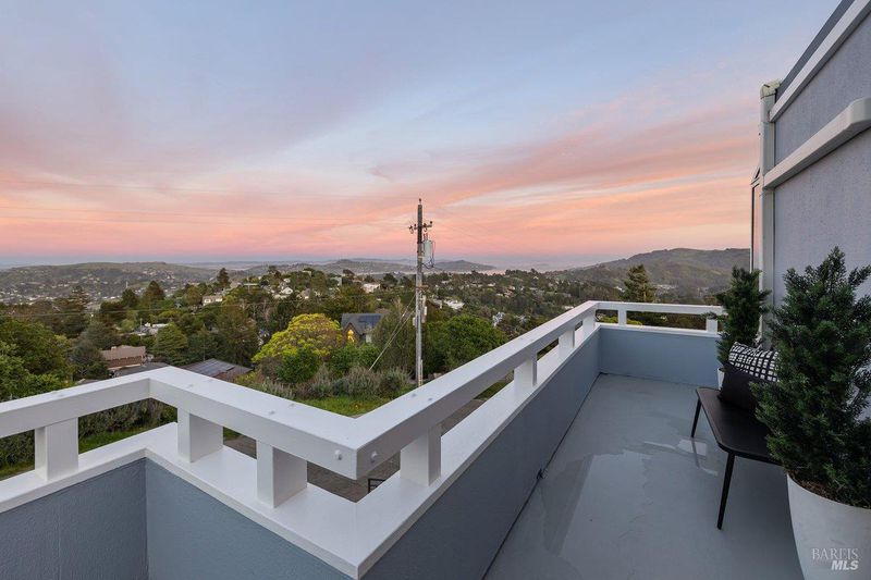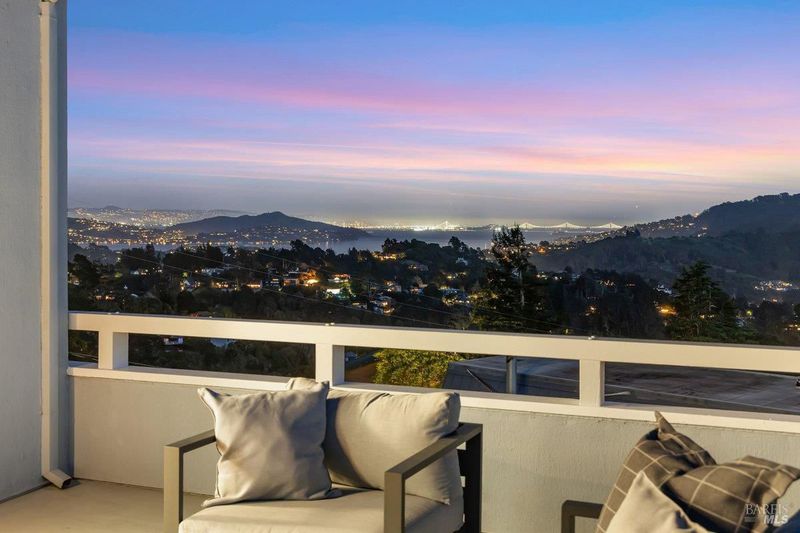 Sophisticated Art Moderne home built by the head of the Art Deco Society in San Francisco with panoramic views from the East Bay to the Marin Headlands. Sited on a corner lot, this stylish and meticulously maintained 3 bedroom, 2.5 bath house evokes an urban residence with its many elegant and custom finishes. All day sun, 4 decks for entertaining, landscaped garden, plenty of parking, finished basement with plenty of storage, air conditioning & solar panels with back up powerwall. Easy commute location yet close to the beach and Mount Tam. Waterview Drive dead ends at a trailhead.