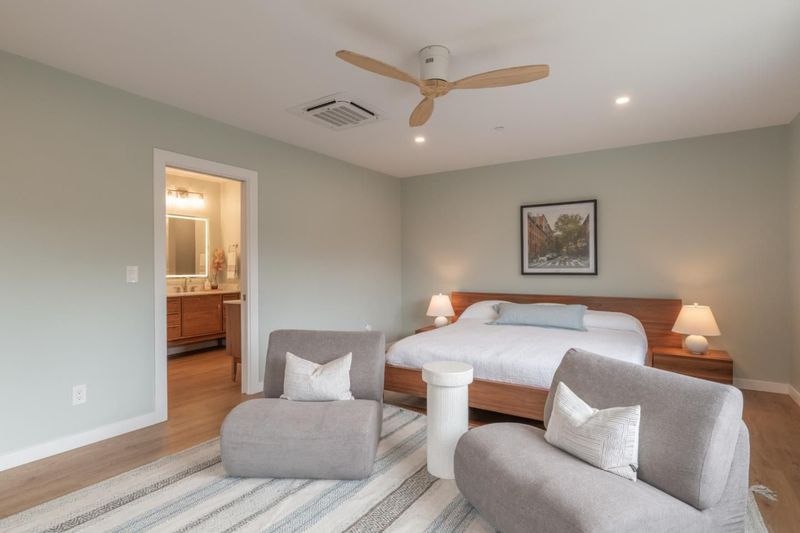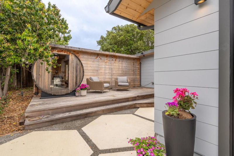 Carmel, an exceptional high end modern designer retreat fully reimagined inside and out set on a private, lush 1/3acre just minutes from beaches, shops, and dining. This rare single level 3BD/2.5BA home offers 2,142± square feet of refined coastal living with owned solar and resort style grounds. Striking yet inviting interiors blend contemporary architecture with warmth and livability, featuring custom cabinetry, soapstone countertops, quartz baths, a wood burning fireplace, and a chefs kitchen with premium appliances, Bosch induction cooktop, and double ovens designed for everyday comfort and entertaining. Comprehensively upgraded throughout with new electrical, plumbing, insulation, subfloor, drywall, and a 5zone minisplit HVAC system. Energy efficiency is enhanced by an owned 10.44 kW solar system (NEM 2.0) and Tesla EV charger. The grounds offer a true private sanctuary with lush landscaping, mature fruit trees, new decks and patios, and thoughtfully designed outdoor living spaces. A barrel sauna and hot tub create a spa like experience at home.