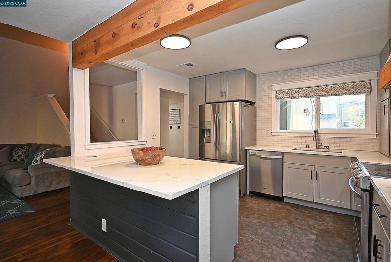 - Dishwasher, Electric Range, Refrigerator, Dryer, Washer, Gas Water Heater, Breakfast Bar, Counter - Solid Surface, Electric Range/Cooktop, Kitchen Island, Updated Kitchen
